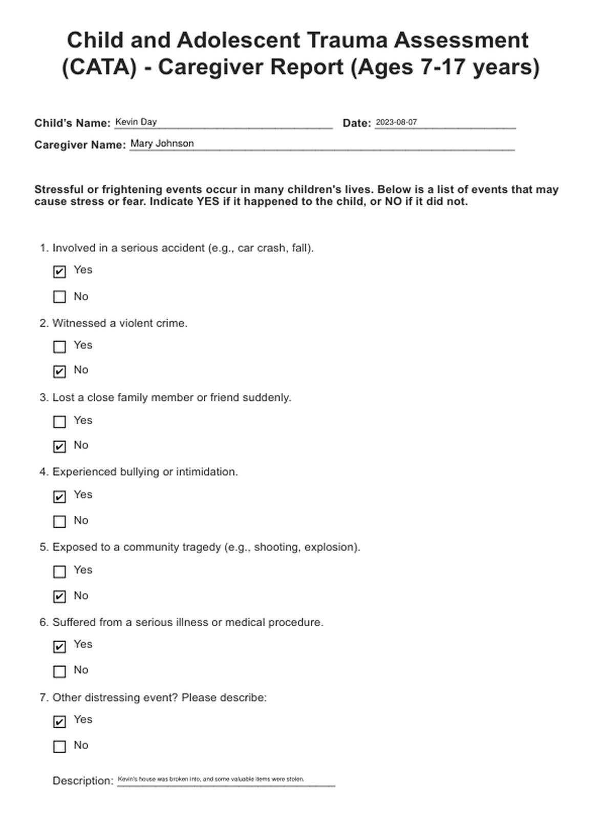 Child and Adolescent Trauma Screen (CATS) - Caregiver Report (Ages 7-17 years) Template