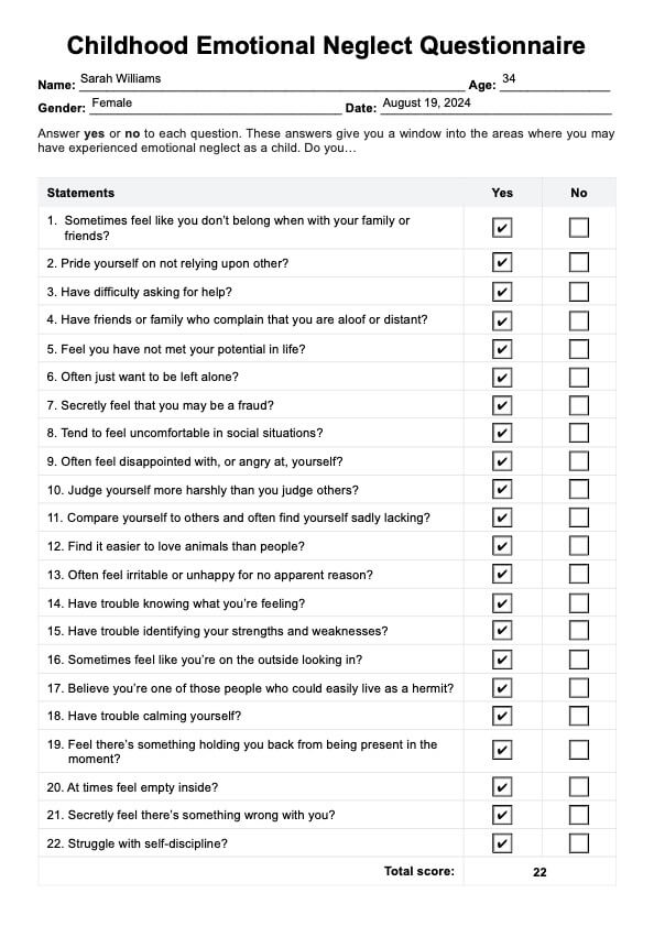 Administer the Childhood Emotional Neglect Test to help clients process their childhood experiences and their impact on current.