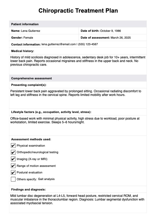 Chiropractic Treatment Plan Template