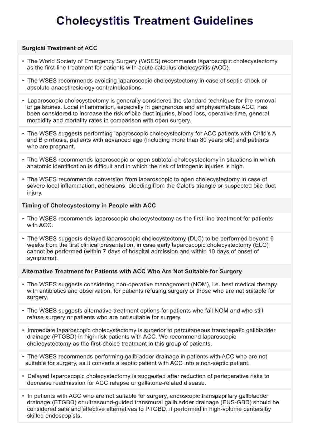Cholecystitis Treatment Guidelines Template