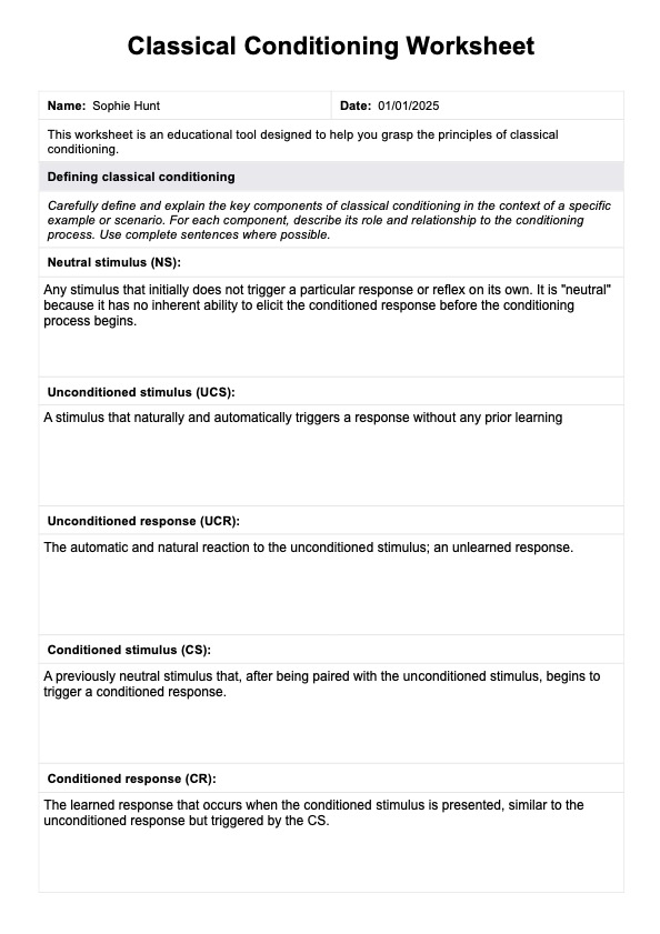 Learn more about classical conditioning with our tailored worksheet, perfect for students, therapists, and self-learners.