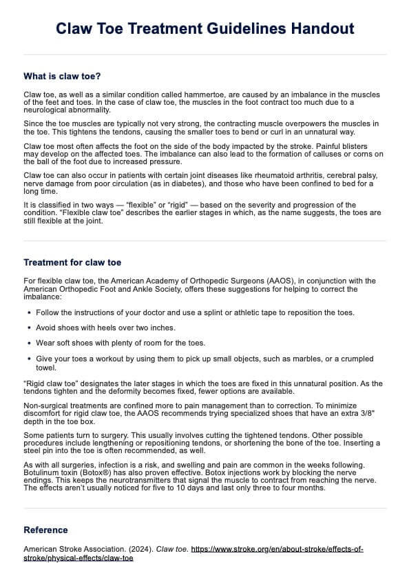 Claw Toe Treatment Guidelines Handout Template