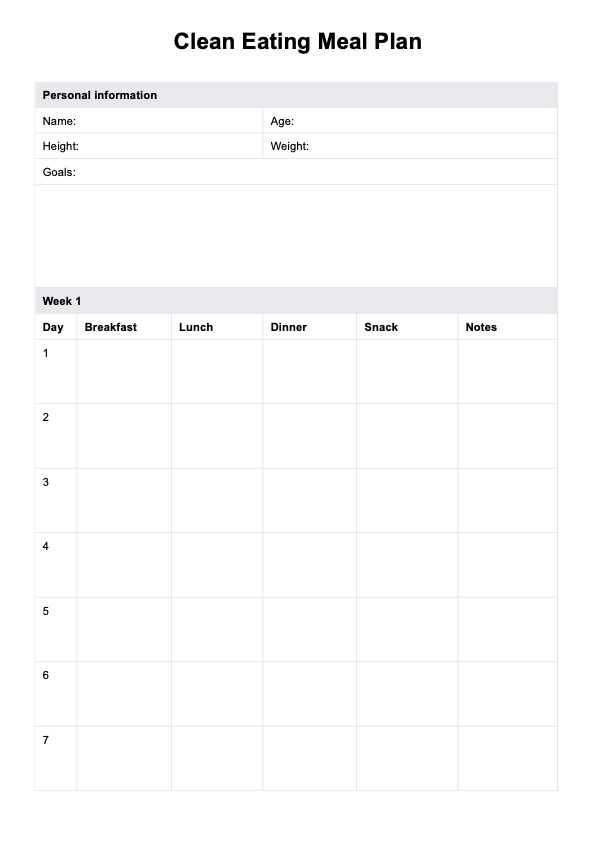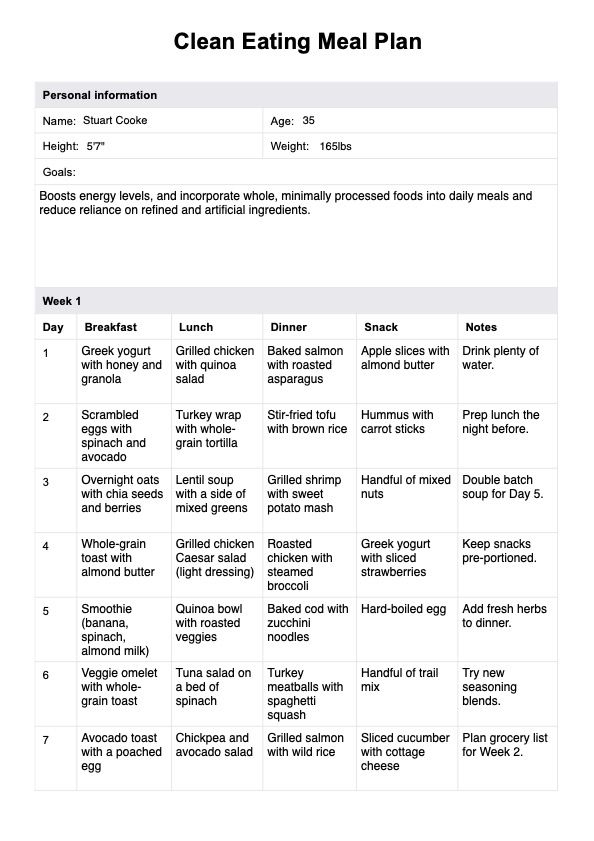 Clean Eating Meal Plan Template