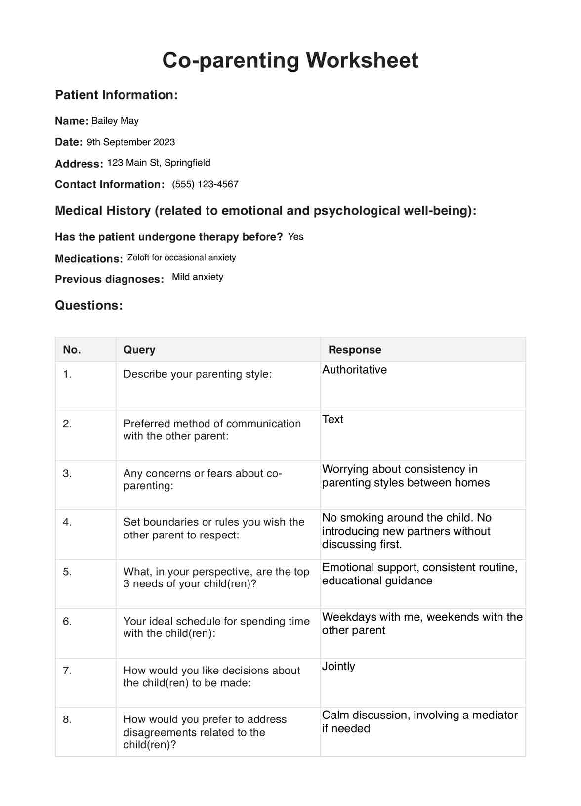 Absolutely! Carepatron offers resources like the Co-parenting Worksheet that professionals can use. Its features facilitate structured sessions and provide tools for effective co-parenting strategies.