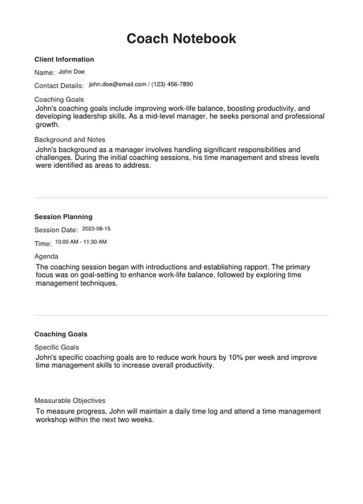 Coach Notebook Template