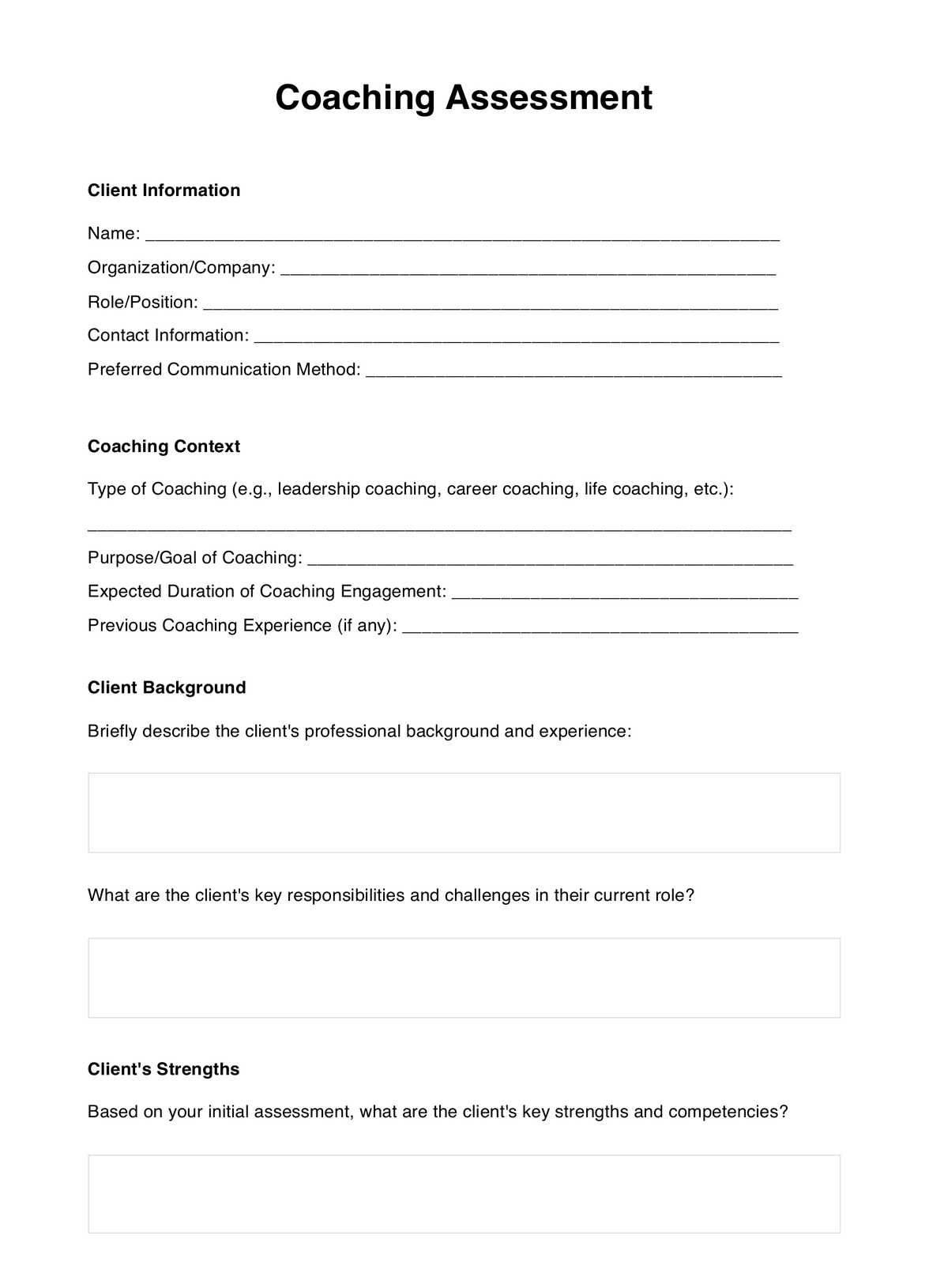 Unlock client potential and drive results with a Coaching Assessment. Set clear goals, track progress, and identify strengths. Elevate coaching practice today!
