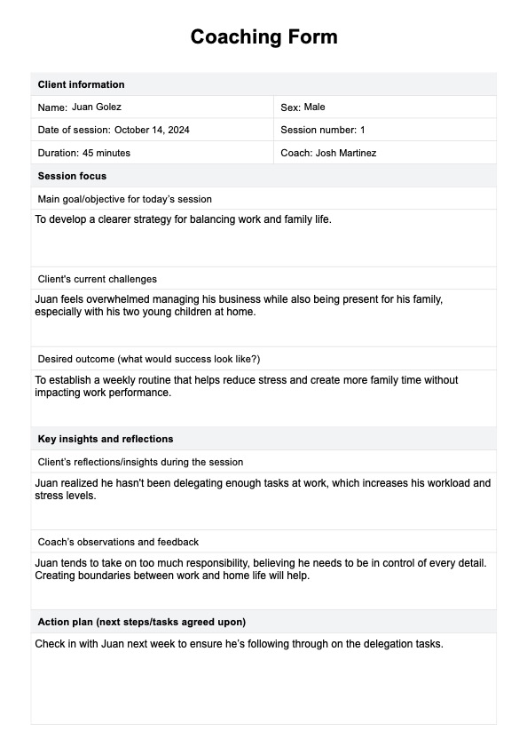 Ensure an effective coaching process by using this Coaching Form. Facilitate goal-setting and honest conversation to achieve positive outcomes.