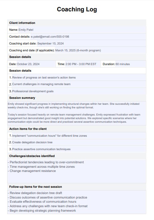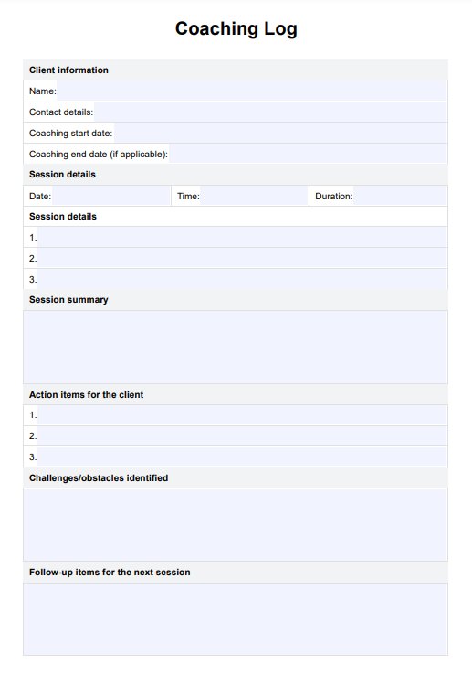 Track your client's journey and achieve optimal outcomes with our Coaching Log Template.