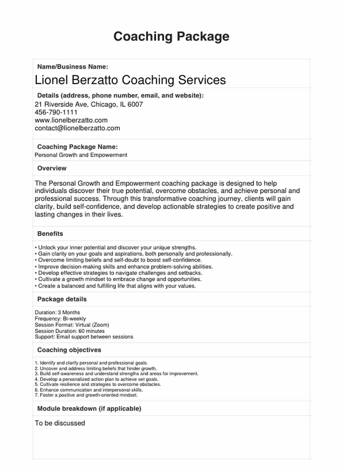 Get access to a free Coaching Package Template and PDF example to help improve your coaching services. Download now!