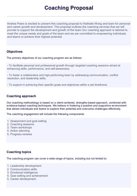 Enhance your coaching services with a free Coaching Proposal Template. Download now to create tailored coaching proposals for your clients.