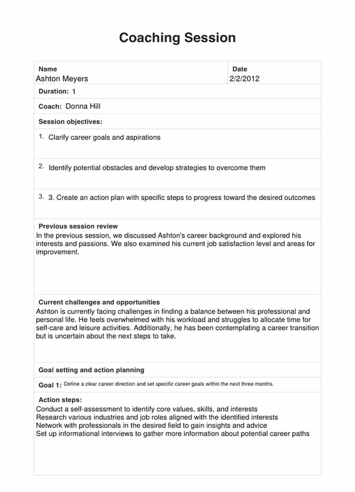 Coaching Session Templates Template