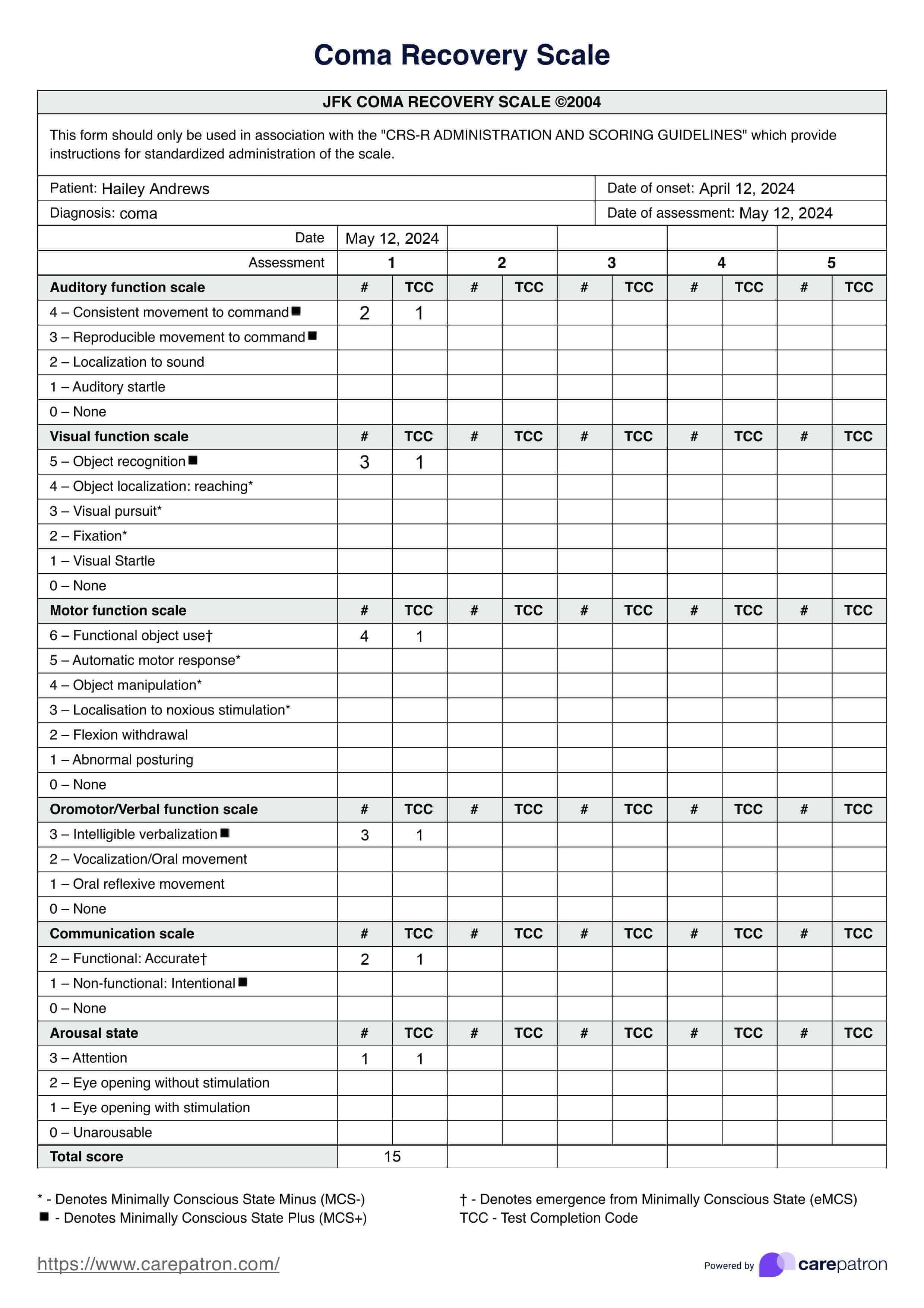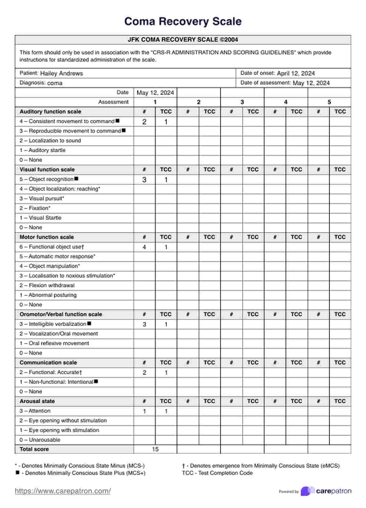 Assess the patient's coma recovery with the Coma Recovery Scale, a standardized tool for evaluating consciousness and predicting outcomes.