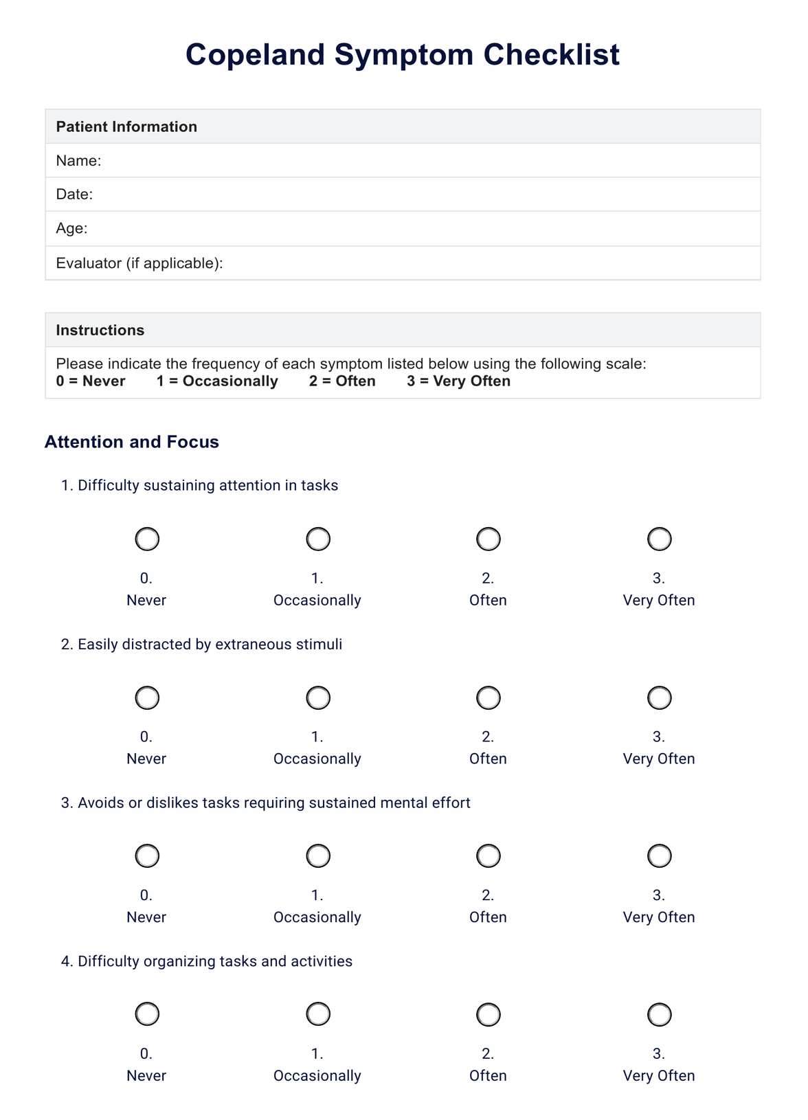Streamline ADHD assessments with our Copeland Symptom Checklist Template, which is perfect for accurate and efficient symptom tracking.