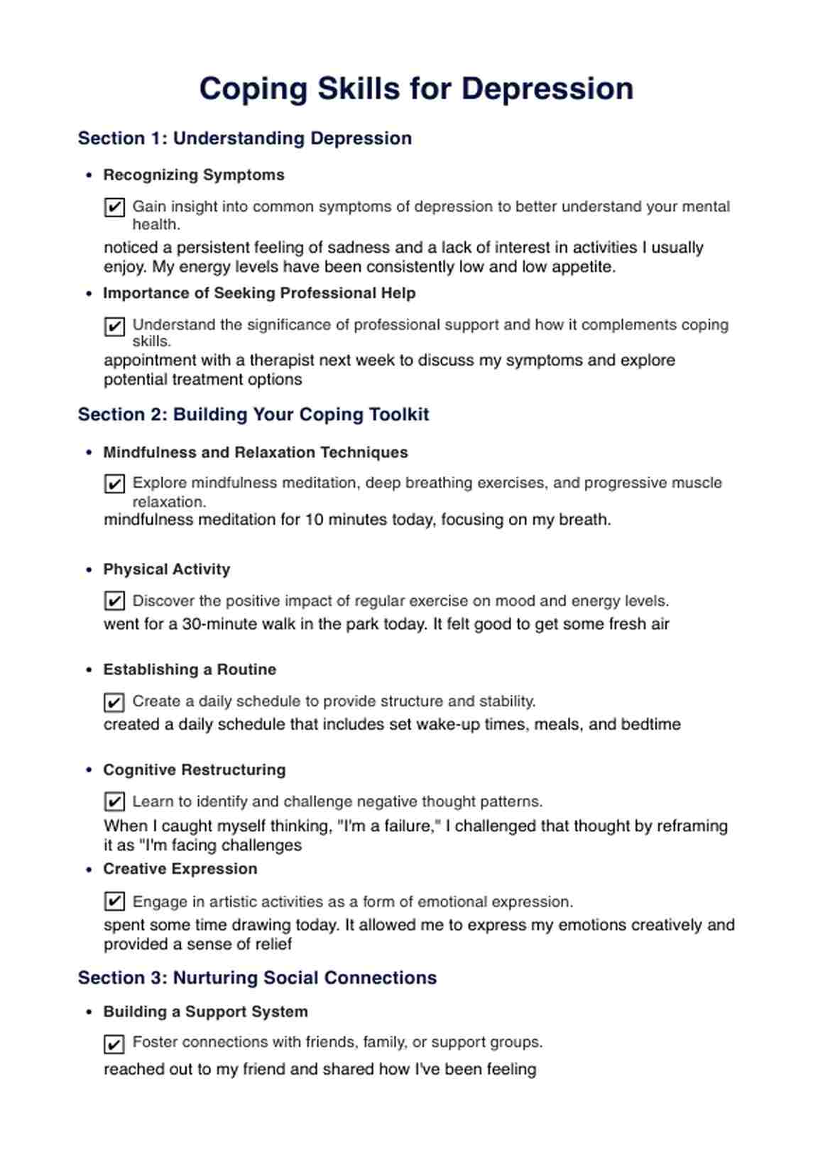 Coping Skills For Depression PDF Template