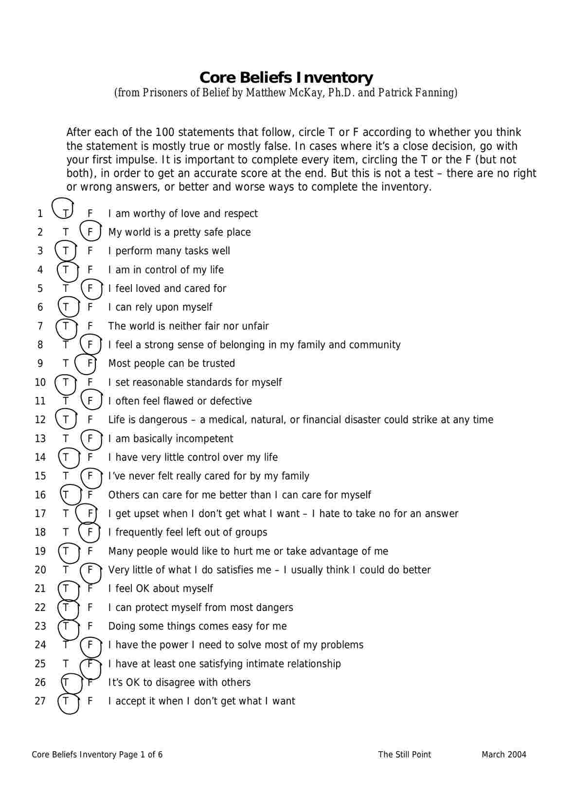 Learn how the Core Beliefs Inventory can help your clients unearth their values. Download a free PDF template here.