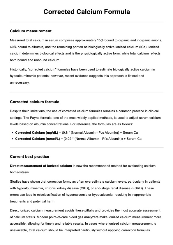 Access our Corrected Calcium Formula handout for an overview and updated guidelines on calcium correction, including best practices for assessing calcium status.
