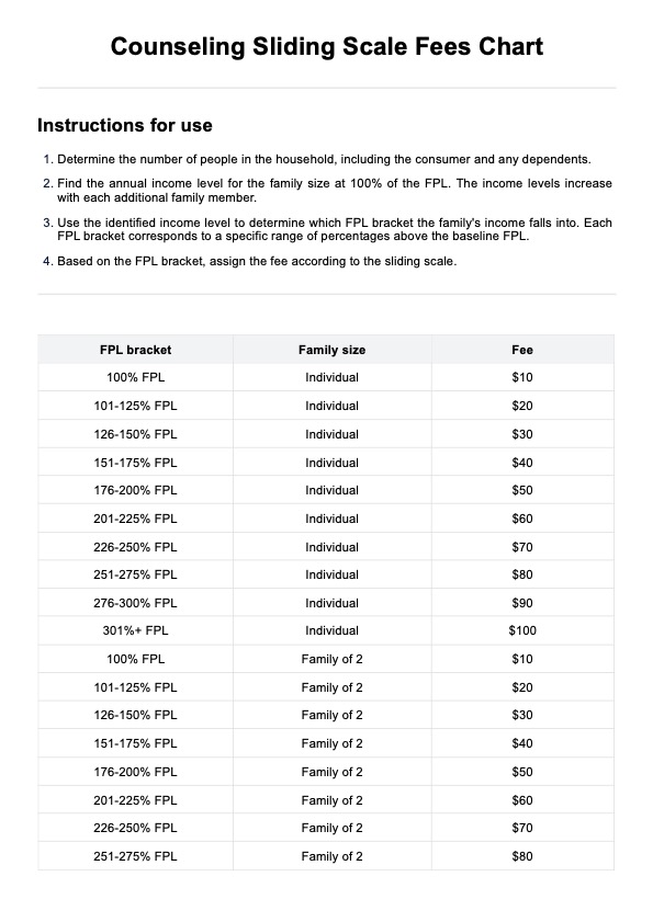 Counseling Sliding Scales Fees Chart Template