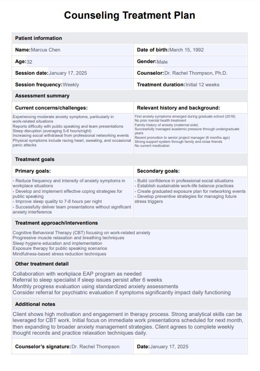 Counseling Treatment PlanAI Template IconToolbar IconShare Icon