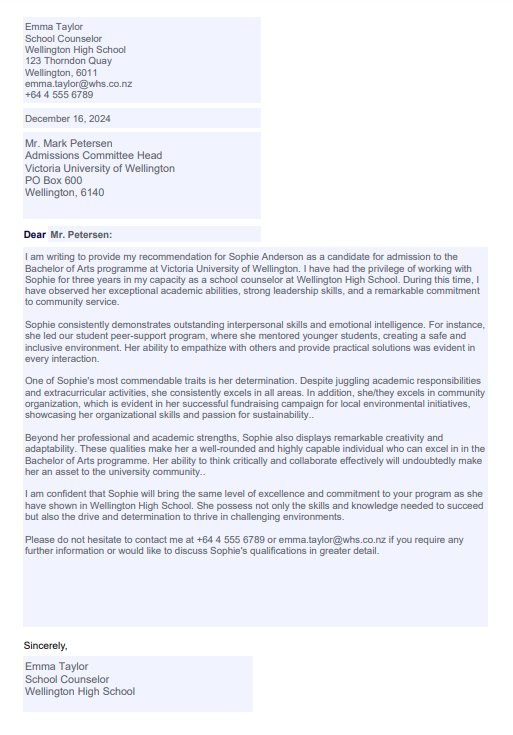 Counselor Recommendation Letter
