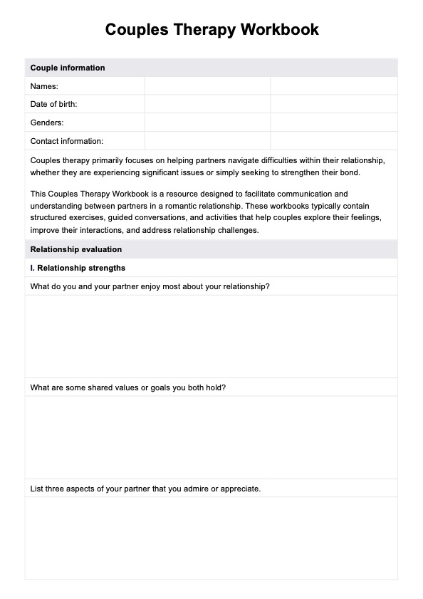 Get free Couples Therapy Worksheets to help clients improve communication, address relationship issues, and build a healthier connection.