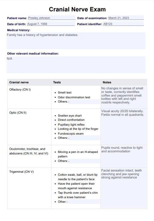 Use our Cranial Nerve Exam template as a guide when studying or conducting a cranial nerve assessment.