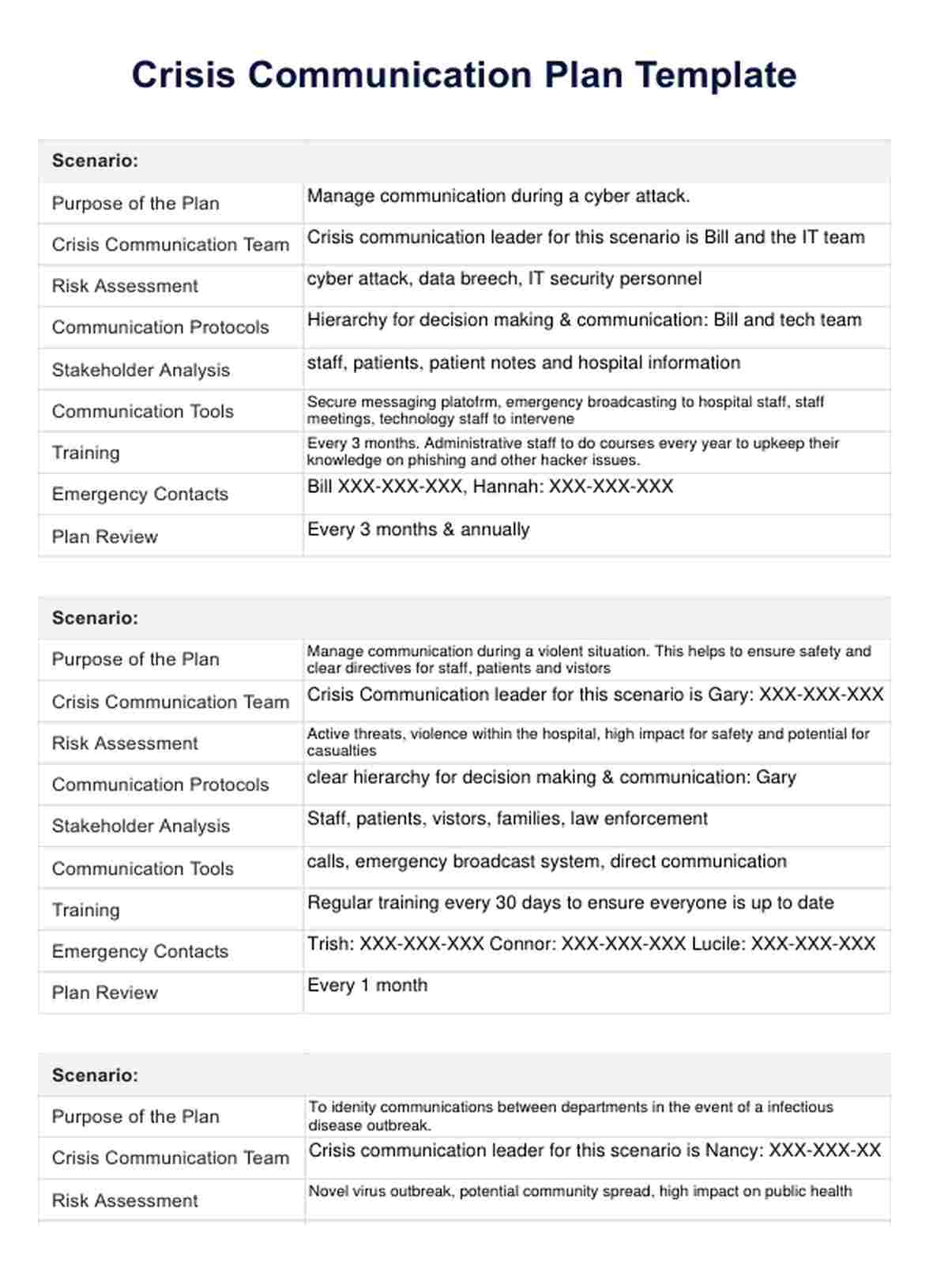 Crisis Communication Plan Templates can be used to help support staff members of a healthcare practice. Once completed, your organization can utilize the plan as a practice when a crisis emerges.