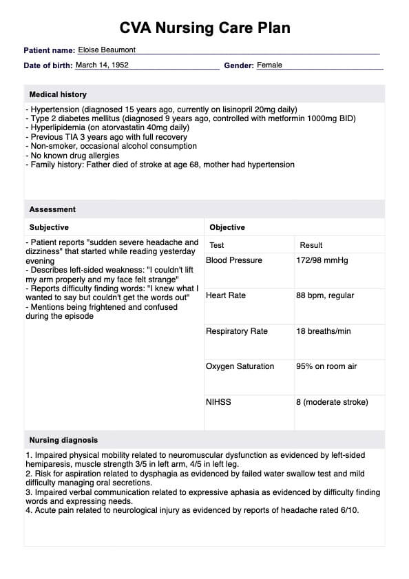 Download a comprehensive and customizable CVA Nursing Care Plan template, ideal for healthcare professionals.