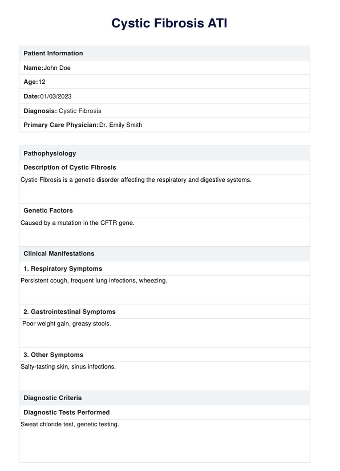 Explore the Cystic Fibrosis ATI Template for comprehensive CF management and education, enhancing learning and patient care in medical settings.