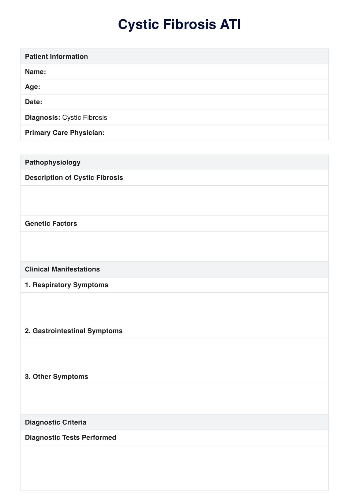 Cystic Fibrosis ATI Templates can be used for documenting and analyzing cystic fibrosis in a structured manner.
