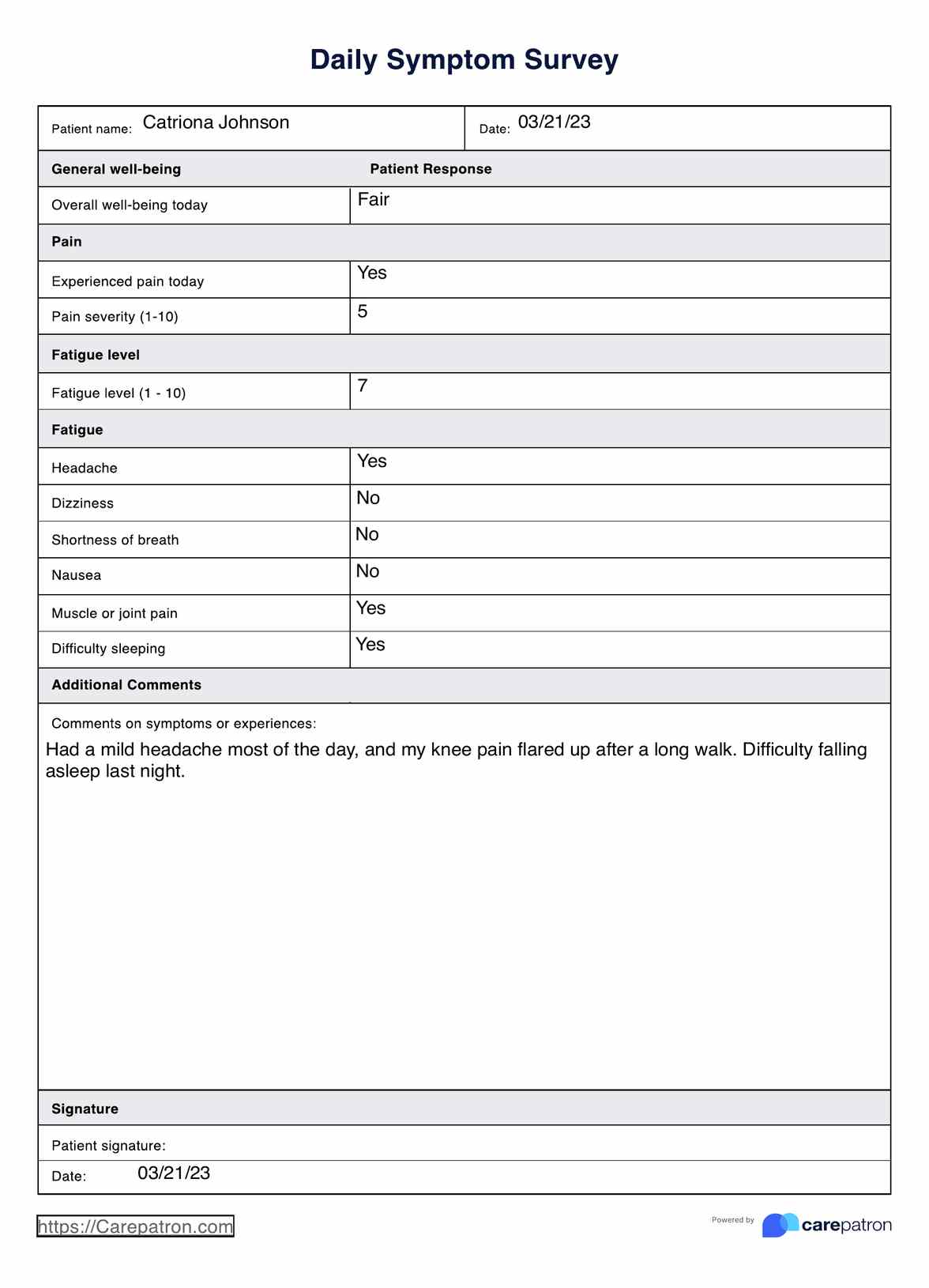 A Daily Symptom Survey can be used when monitoring patients with chronic conditions or during treatment to track progress and identify any potential changes in health status.