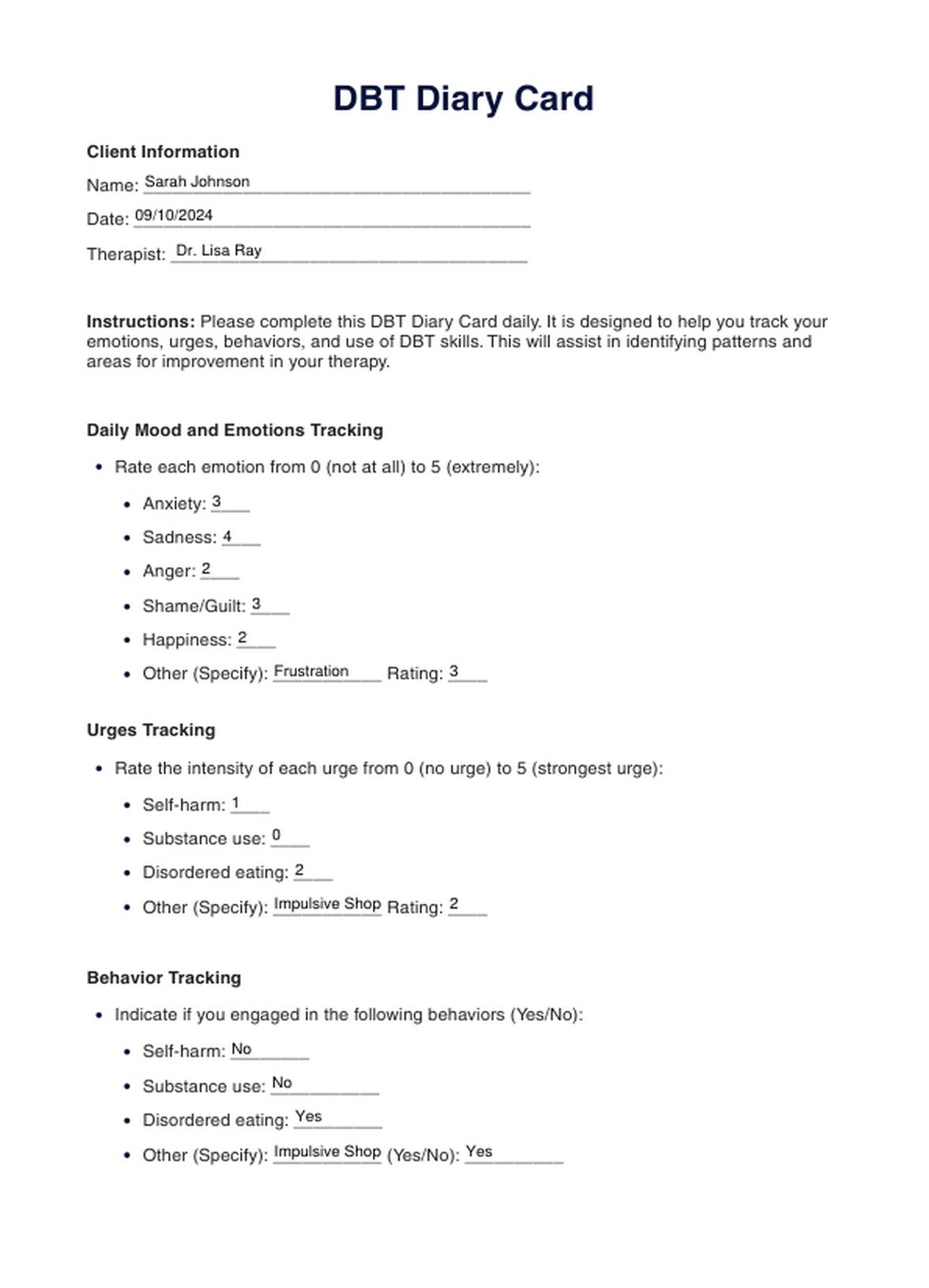 Discover the benefits of using Carepatron's DBT Diary Card, a comprehensive tool for tracking progress in Dialectical Behavior Therapy.