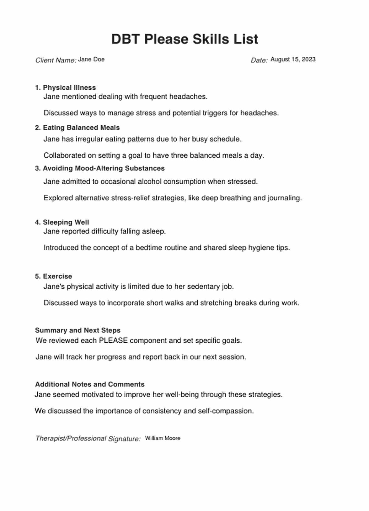 DBT PLEASE Skills Lists are commonly used by individuals undergoing dialectical behavior therapy (DBT), therapists, mental health professionals, support groups, educational institutions, corporate wellness programs, and personal growth enthusiasts.