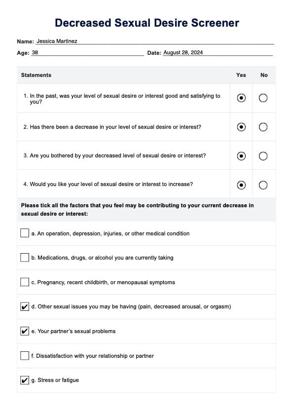 Decreased Sexual Desire Screener Template