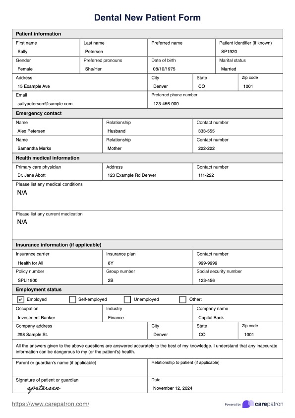 These documents are used when a new patient signs up for treatment at a dentistry practice. Although the form's completion date can be flexible, it should be completed before the first session.