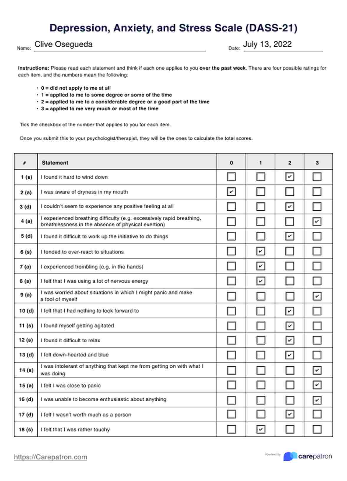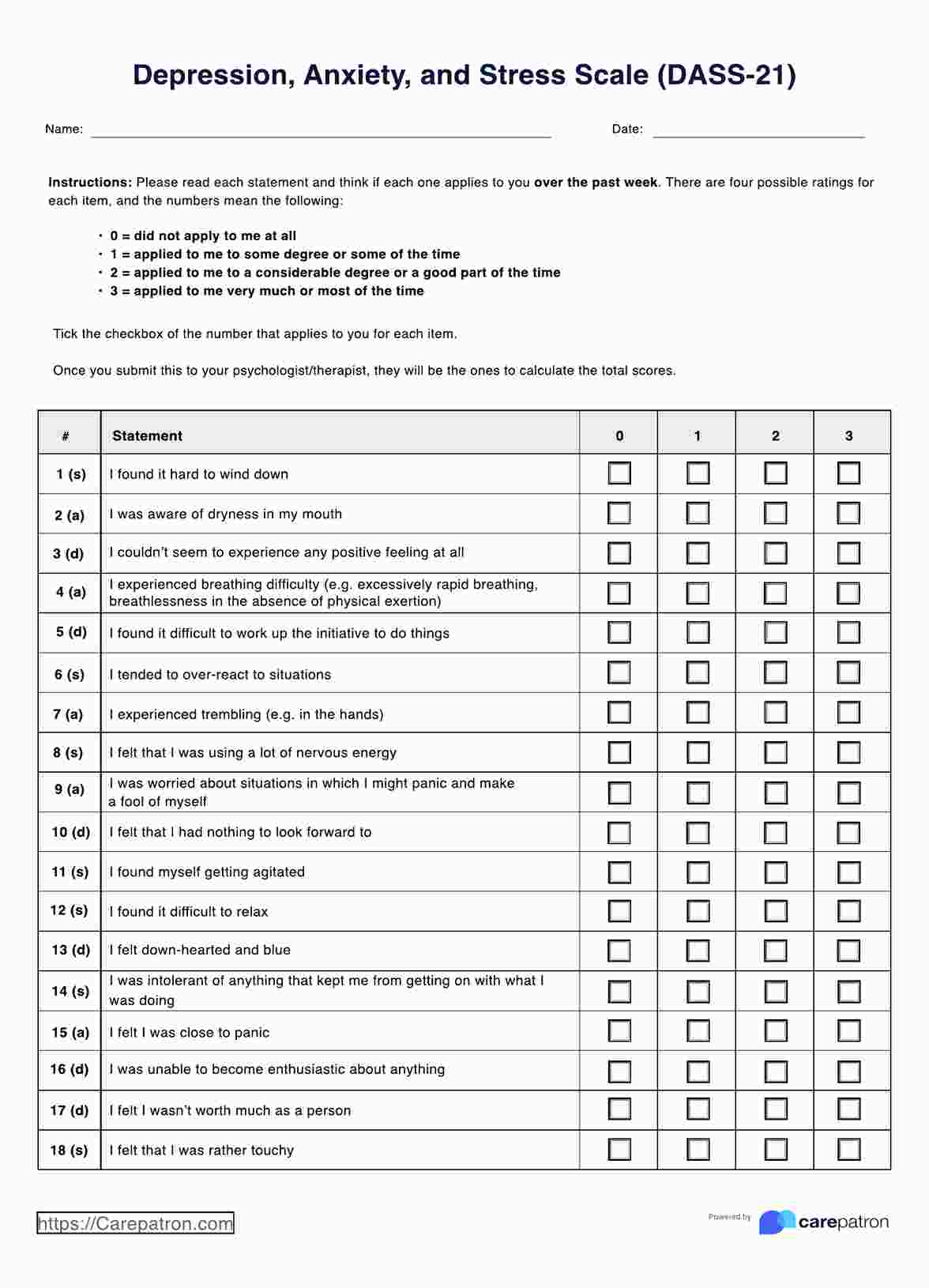 Depression Anxiety and Stress Scale (DASS-21) Template