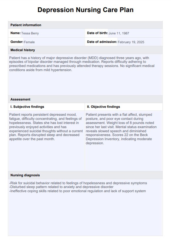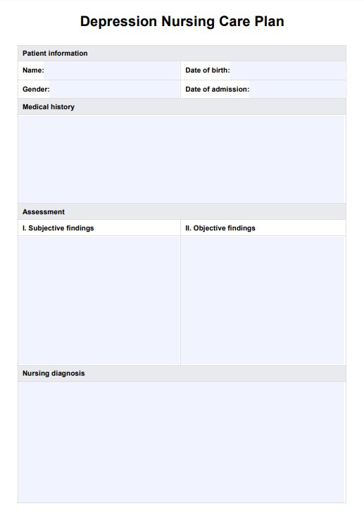Use our free Depression Nursing Care Plan template to support clinical decision-making and improve patient outcomes.