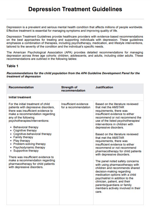 Learn about Depression Treatment Guidelines for effective management and treatment of depressive disorders. Download a free handout here.