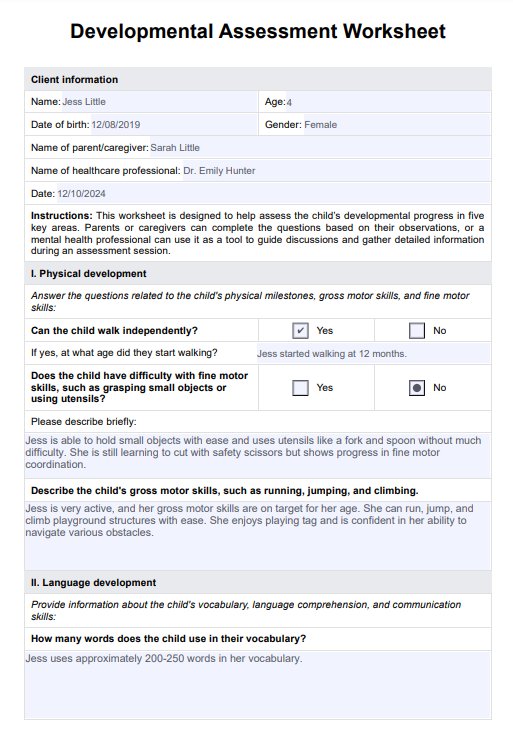 Use this Developmental Assessment worksheet as a supplemental tool to facilitate discussions and better understand the child’s developmental progress.