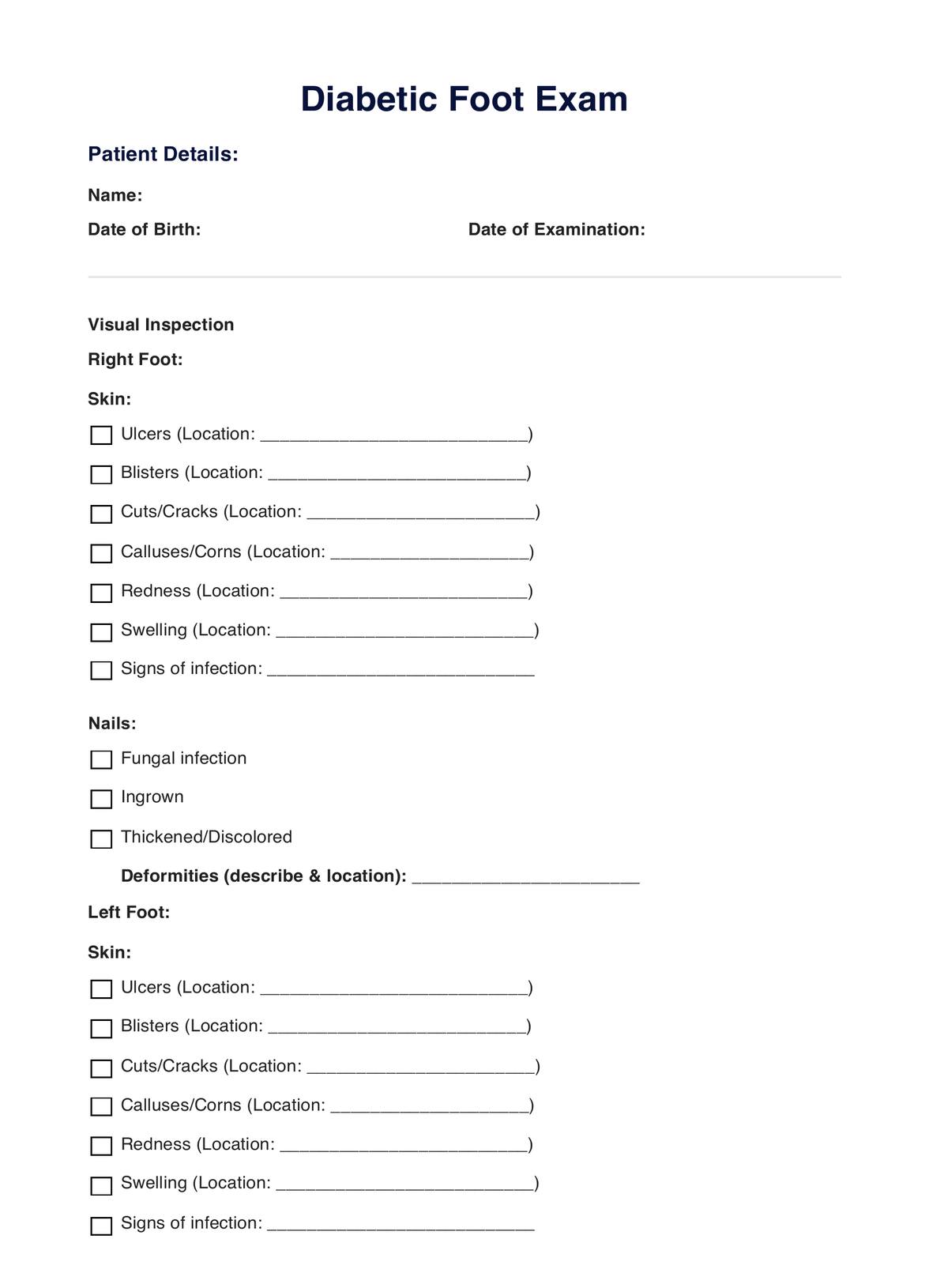 Diabetic Foot Exam Template