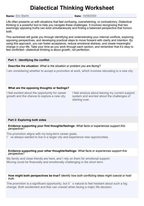 Access our Dialectical Thinking Worksheet to help clients develop balanced perspectives and improve decision-making.