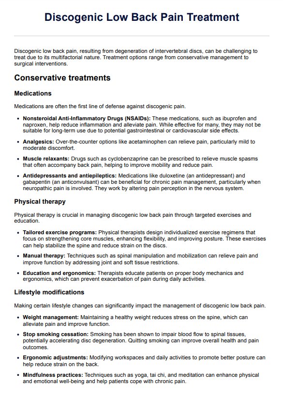 Discogenic Low Back Pain Treatment Template
