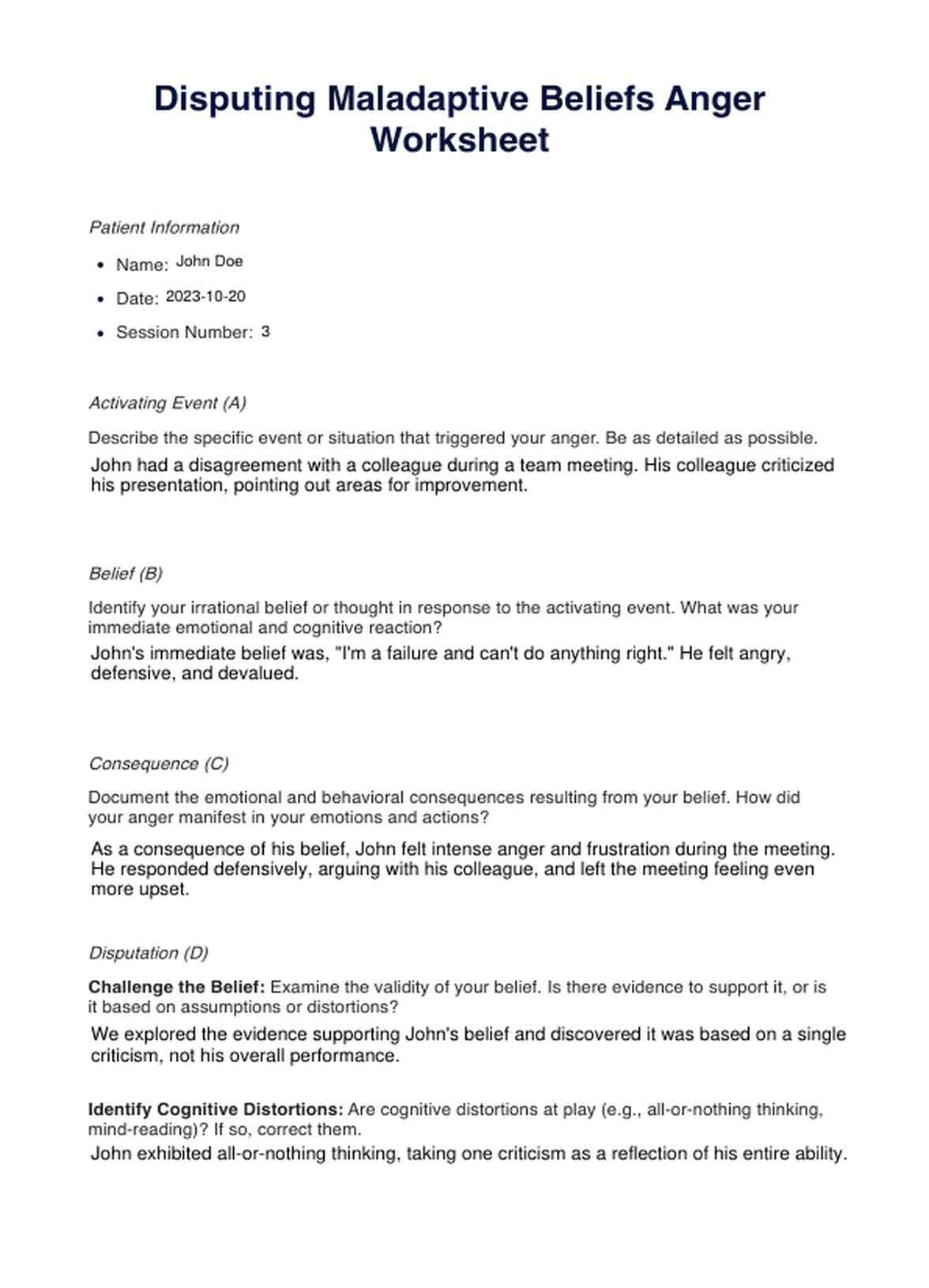 Disputing Maladaptive Beliefs Anger Worksheet Template