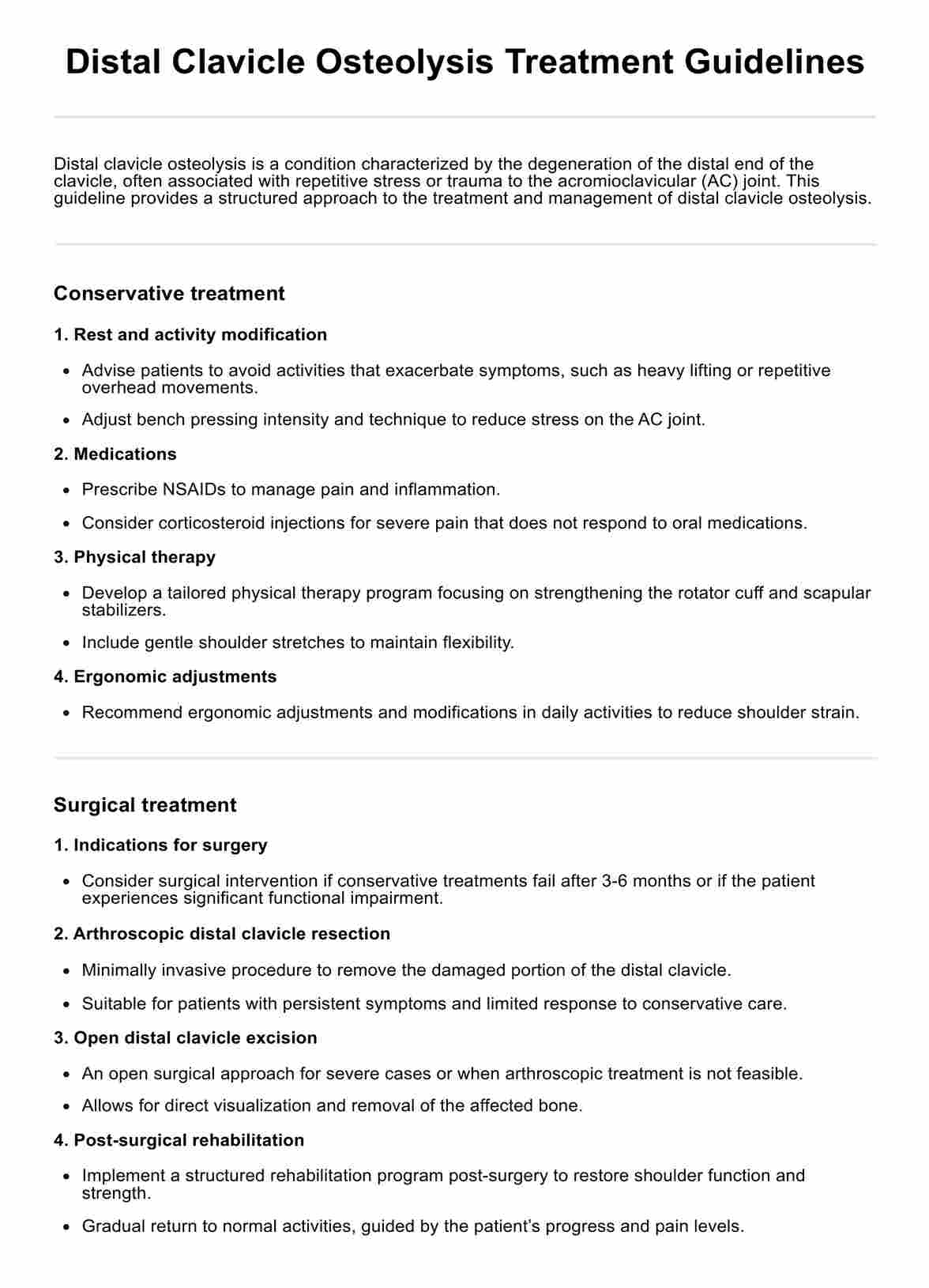 Distal Clavicle Osteolysis Treatment Guidelines Template