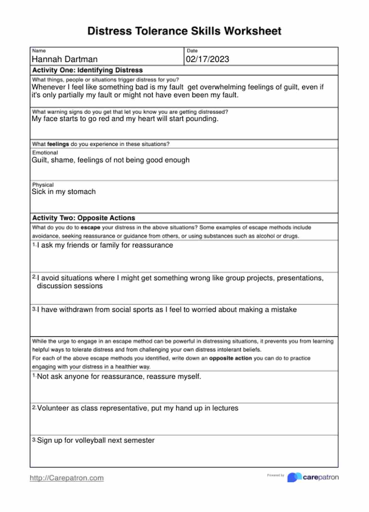 Help your clients learn to sit with their distress and build up their tolerance to distressing emotions with our Distress Tolerance Skills Worksheet.