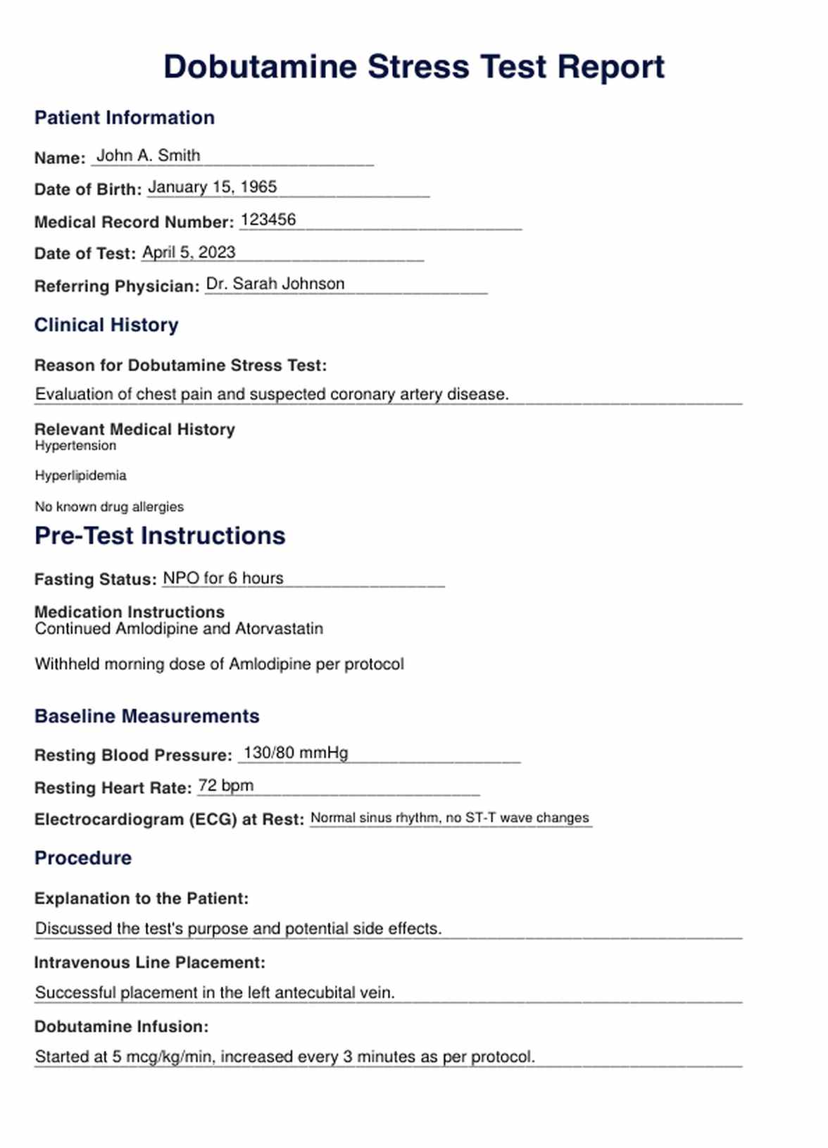 Optimize Dobutamine Stress Test reporting with our streamlined, comprehensive, and tailored template for medical professionals. Download now!