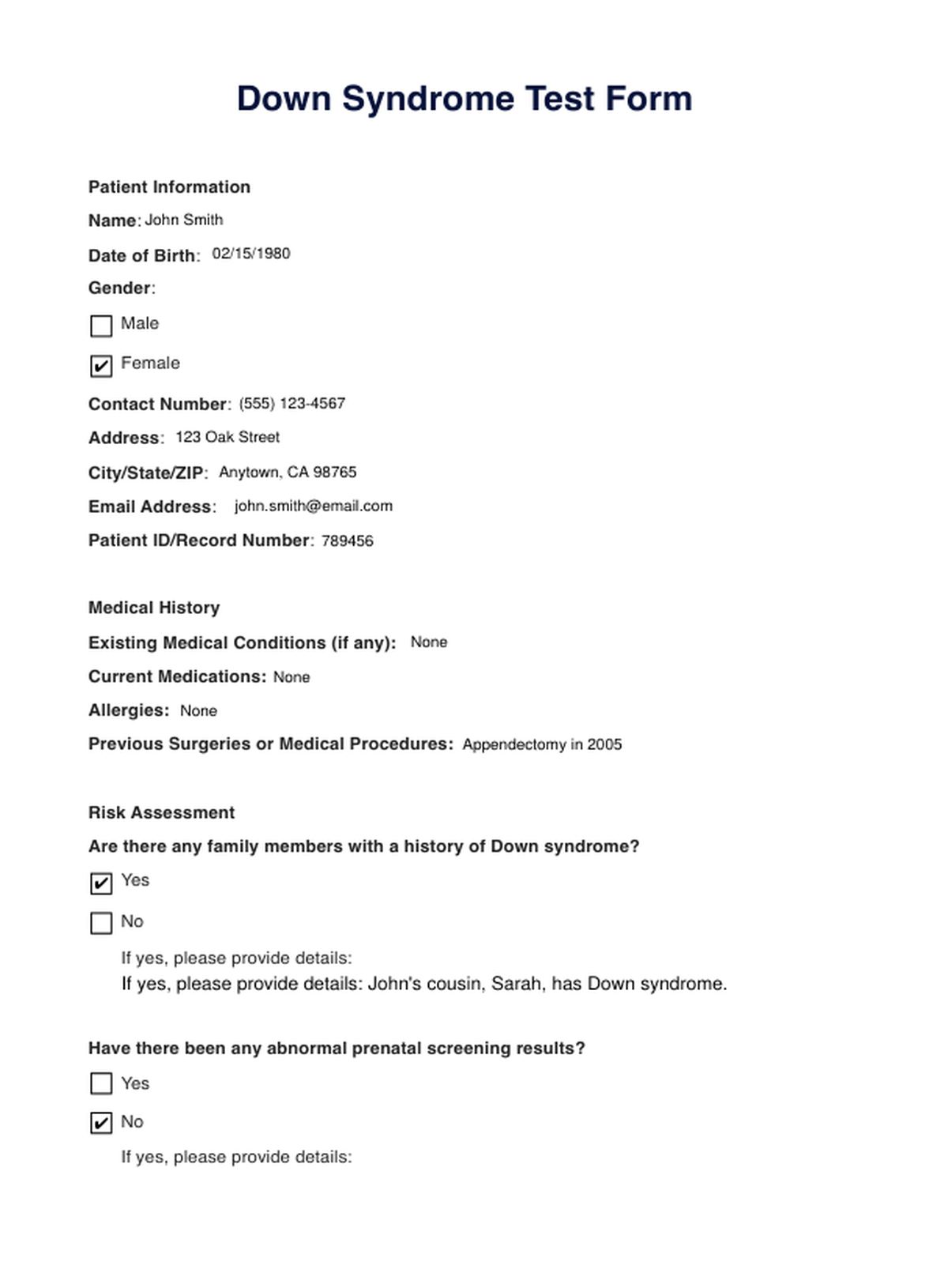 Down Syndrome Tests can be conducted through prenatal, diagnostic, or newborn screening, depending on the pregnancy stage or the patient's age. Prenatal screening involves blood tests and ultrasounds, while diagnostic tests like CVS or amniocentesis are more invasive and definitive. Newborn screening involves physical examinations and genetic testing.