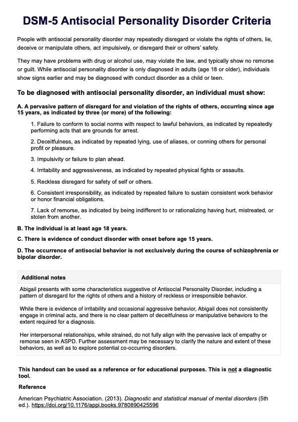 Access a reference handout on DSM-5 criteria for Antisocial Personality Disorder with our comprehensive guide.