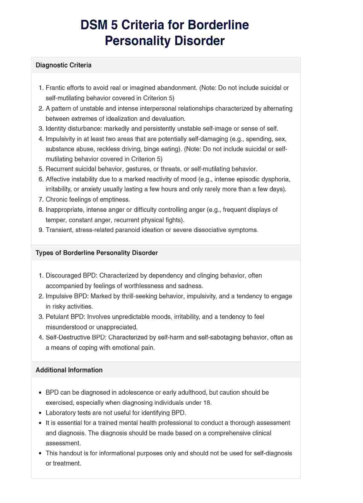 DSM 5 Criteria for Borderline Personality Disorder Template