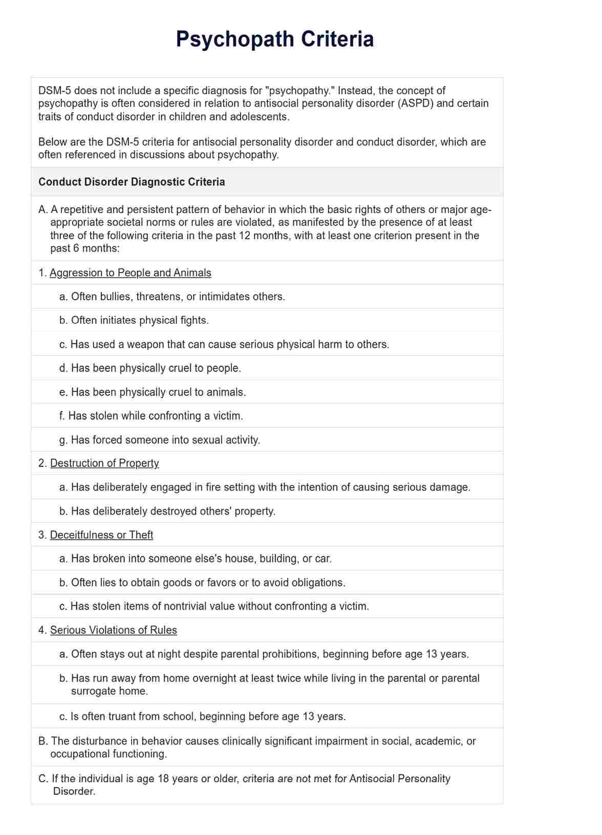 Explore our free, printable template with DSM-5 criteria for disorders related to psychopathy, designed for quick reference and patient education.