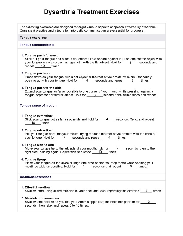 Dysarthria Treatment Exercises Template